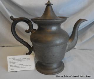 H.B. WARD, WALLINGFORD, CONNECTICUT (Scarce maker – according to Carl Jacobs, p 173) Pewter Teapot (Brittania) Circa 1840's Height : approximate 8-3/4” Old repair at spout base (professionally done) Provenance : estate of Tom Riggs # 8039 a ....................................... SOLD