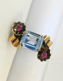 Album: 18K "SCROLLS & FLOWERHEADS" Retro Rose Gold Gem-Set Ring