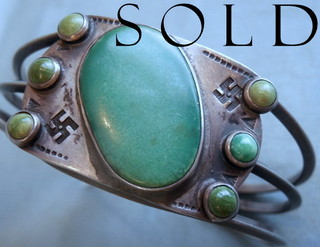 "WHIRLING LOGS" early Old Pawn Navajo Turquoise & Silver Cuff