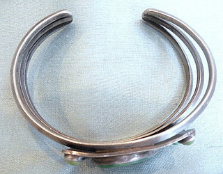 "WHIRLING LOGS" early Old Pawn Navajo Turquoise & Silver Cuff