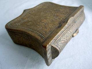 Profusely decorated overall with various florals,scrolls, beading and similar motifs on remainder of the heavy front and side plates, and domed hinged lid